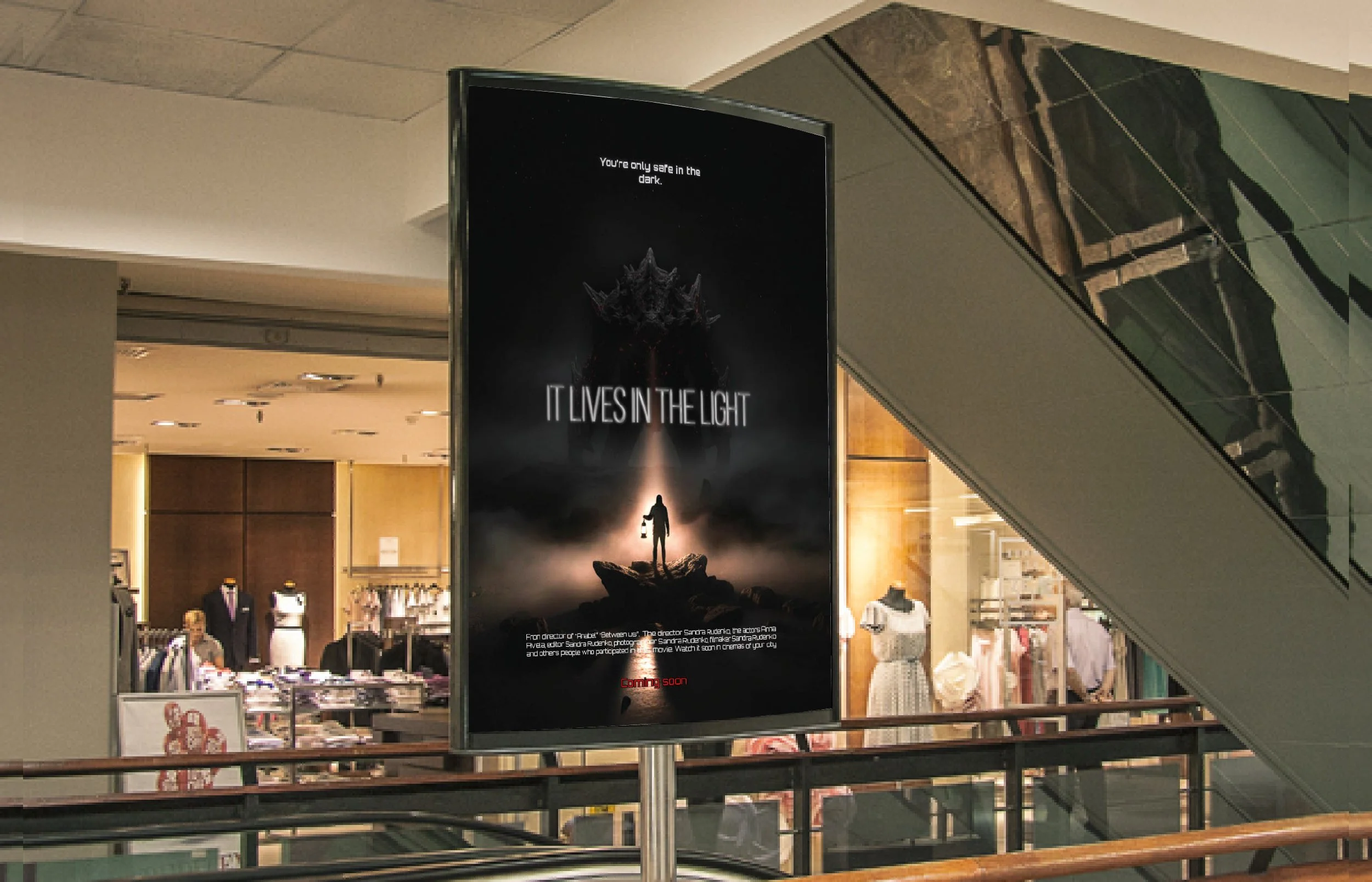 Minimal visual language to evoke fear through presence, not visibility.
